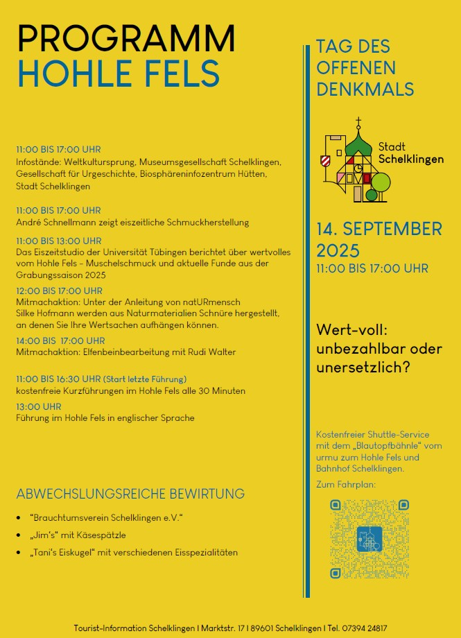 Ihren Besuch im Hohle Fels können Sie in der Gesamtstadt Schelklingen mit weiteren Angeboten zum Tag des offenen Denkmals verbinden: