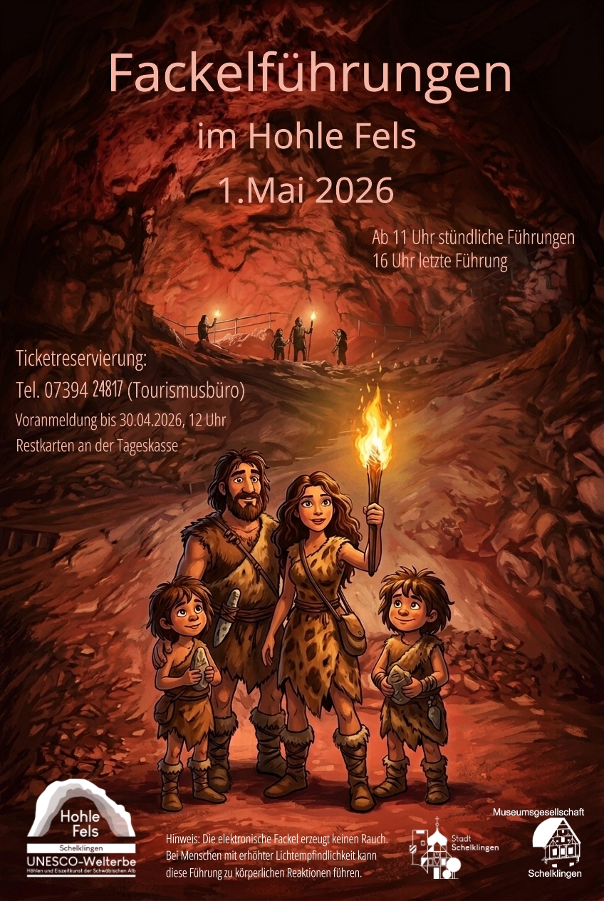 Am 01. Mai beginnt die Saison 2026 im Hohle Fels. An diesem Tag bieten wir Ihnen besondere Führungen: